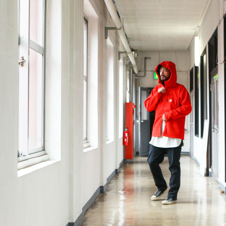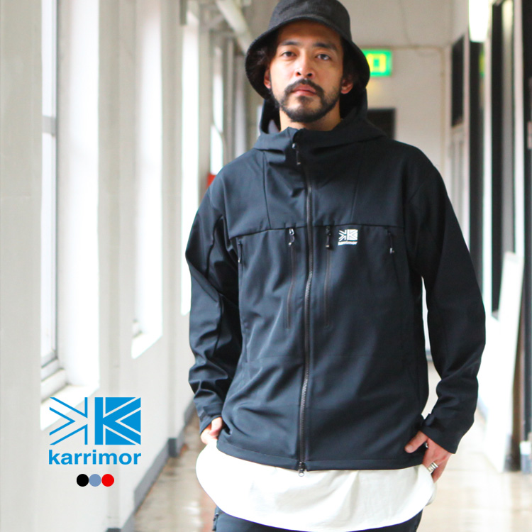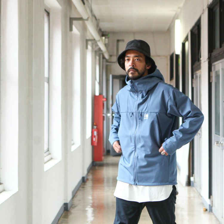 防風性・摩耗性、およびストレッチ性に優れた【カリマー】定番のソフトシェルフーディー。