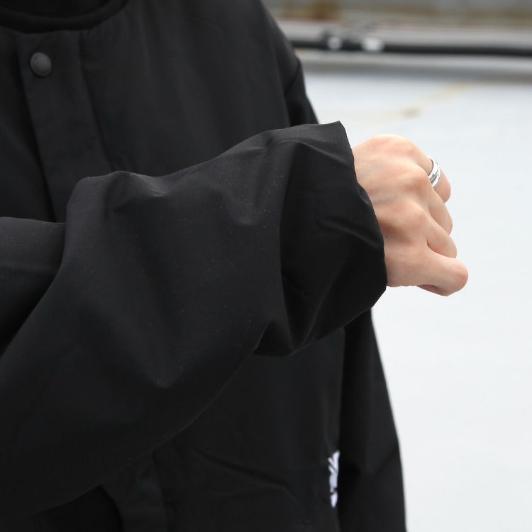 防風性を高めるため、フロントフラップと裾にドローコードを採用。