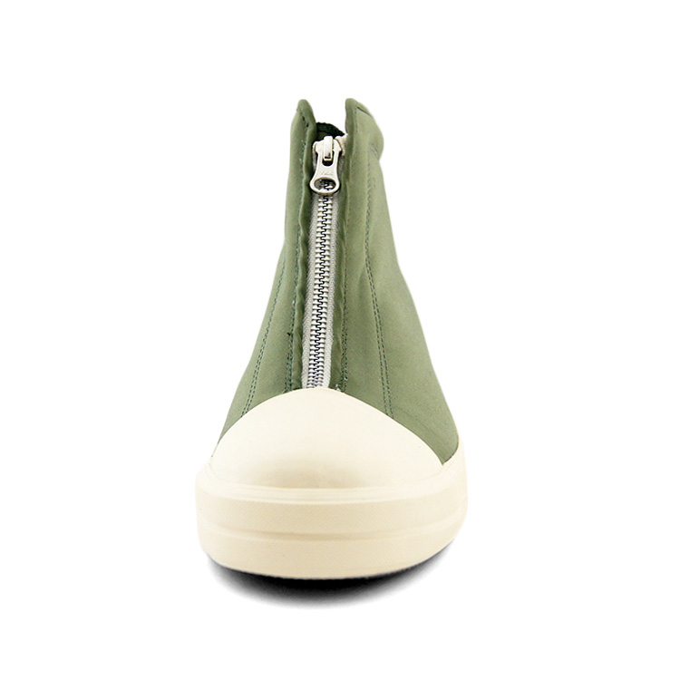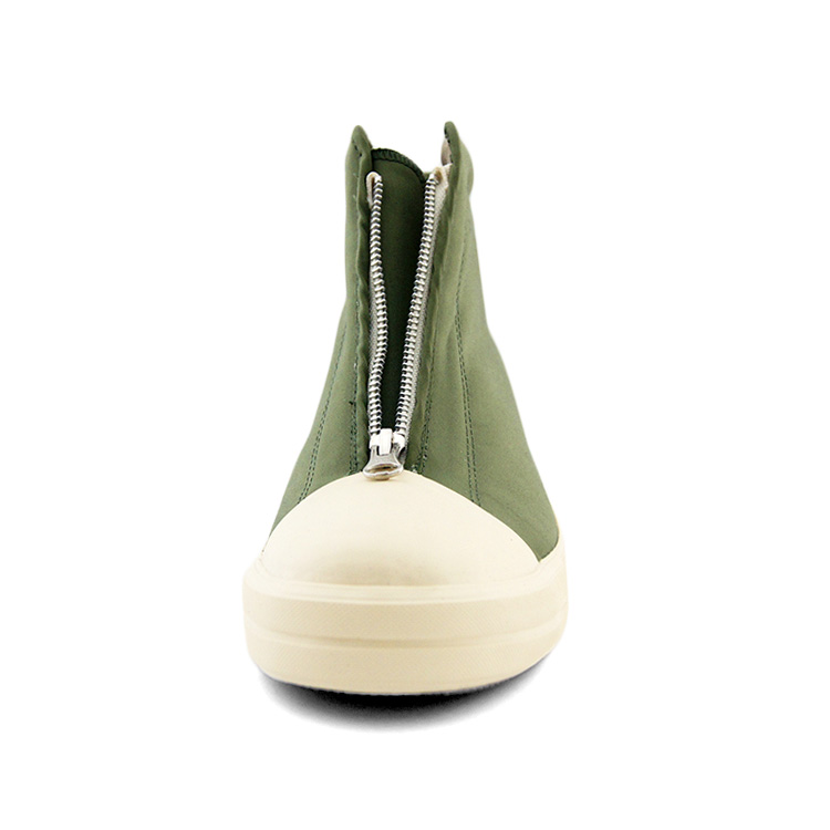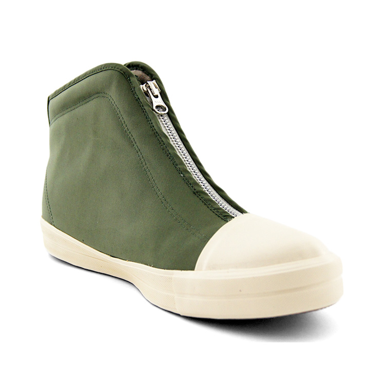 中央に大胆に配置されたジップが最大の特徴で、足型に沿ってジップが配置されているため、見た目以上のホールド感が確保されている。
