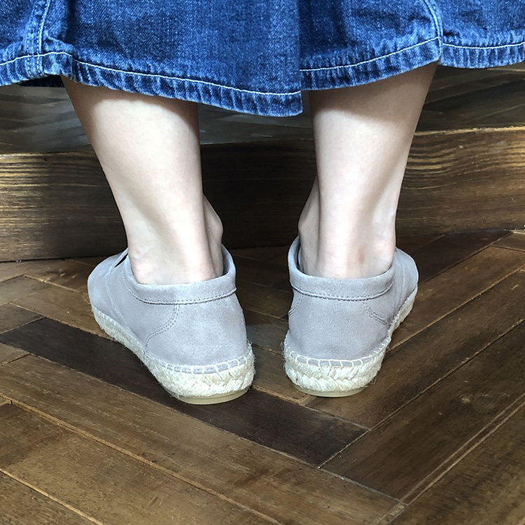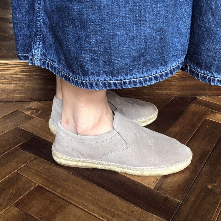 製法はエスパドリーユと呼ばれる靴の中底がジュート素材(麻)で出来ているため通気性が良い。
