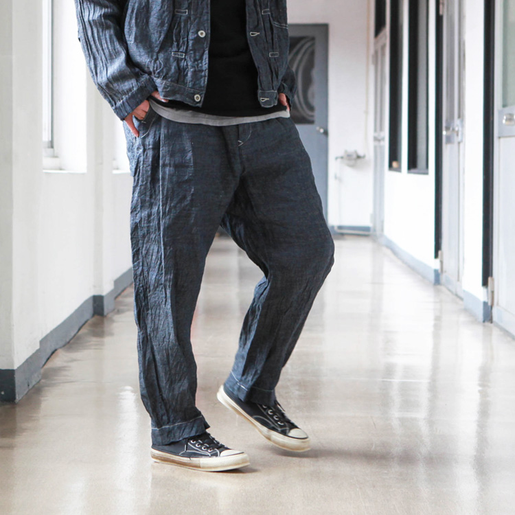 SAGE DE CRET 6.5oz Linen デニム 9分丈ワンタックワイドパンツ