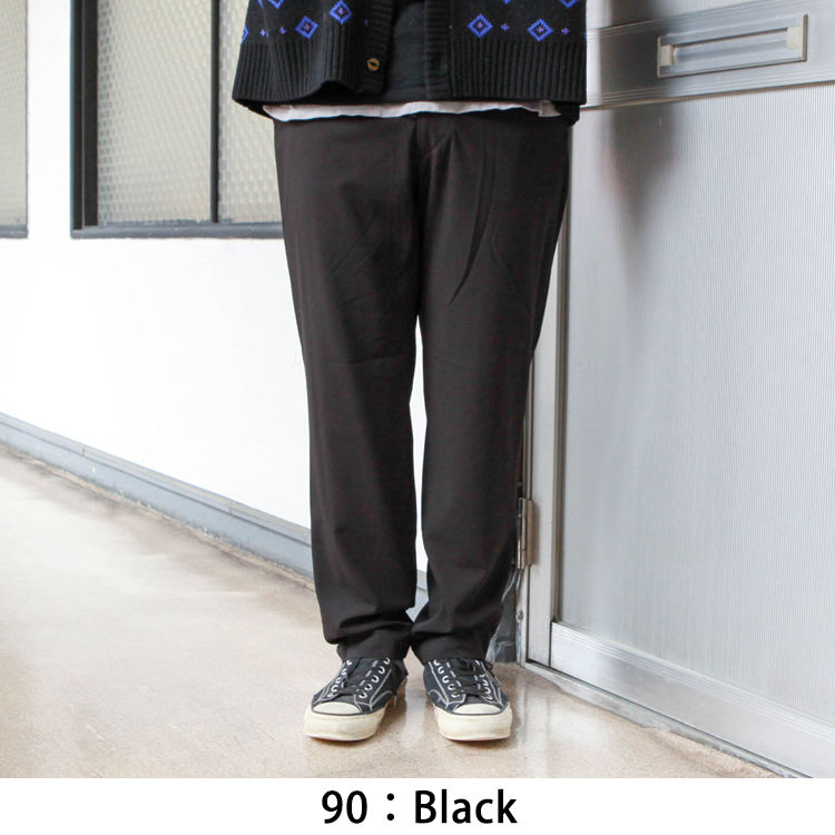 三者混紡素材を採用したなめらかな肌触りのイージーパンツ。
