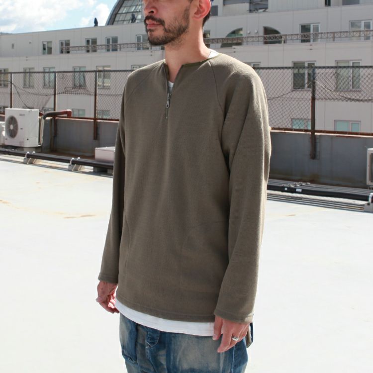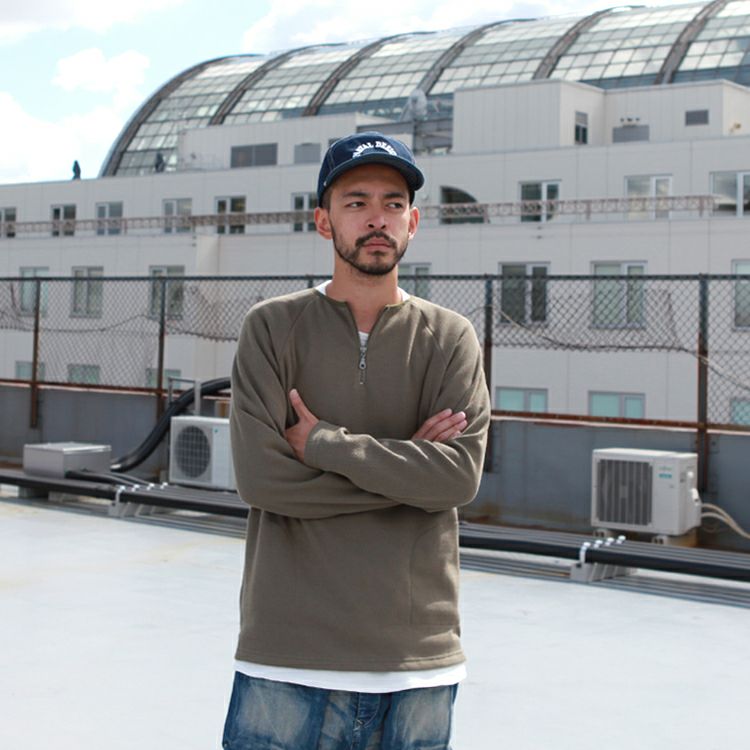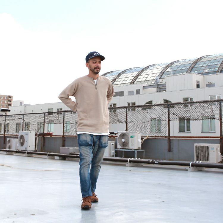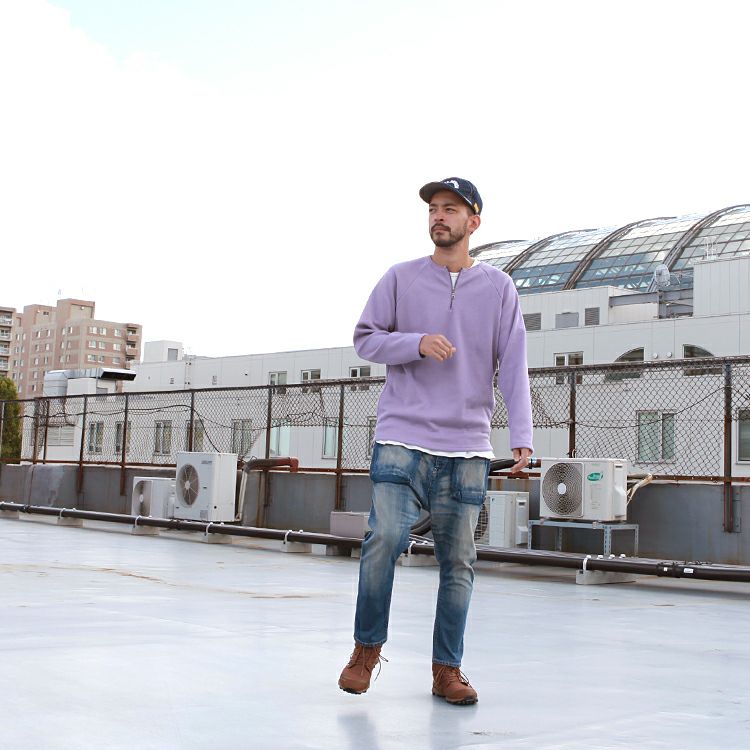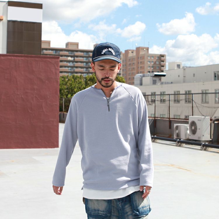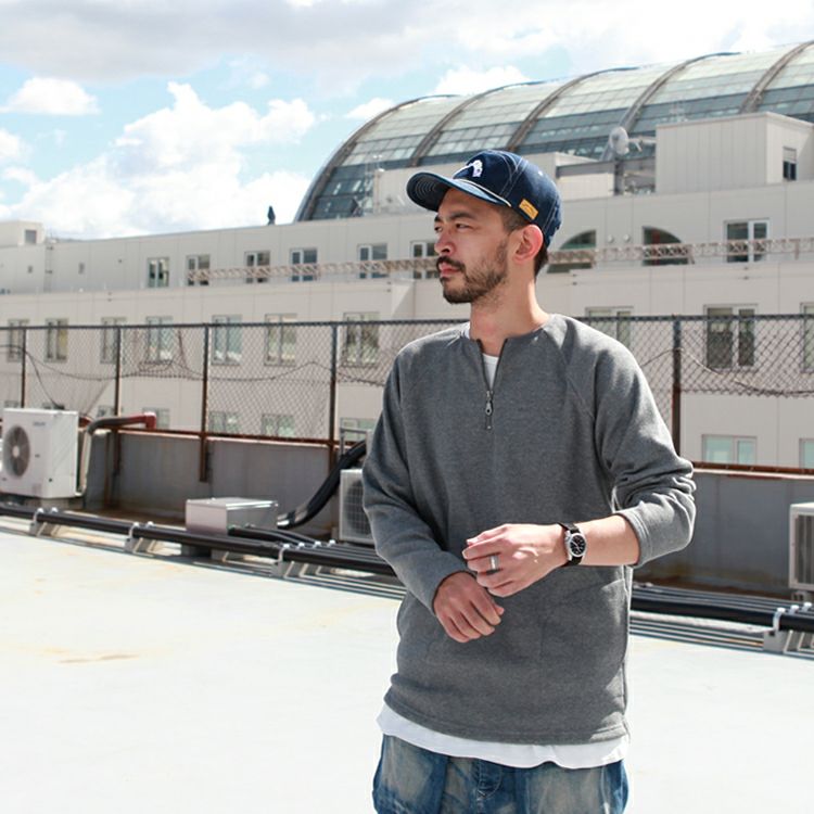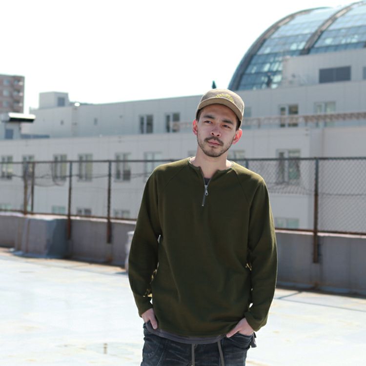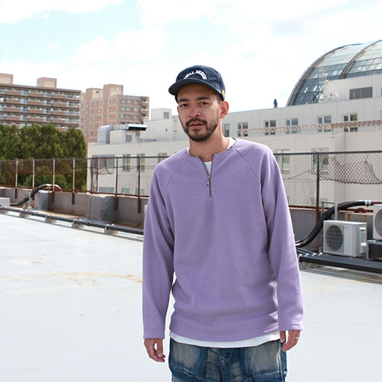 Spinner Bait ハーフジップクルー ラグランL/SL TEE ミニ裏毛 Brownfloor別注