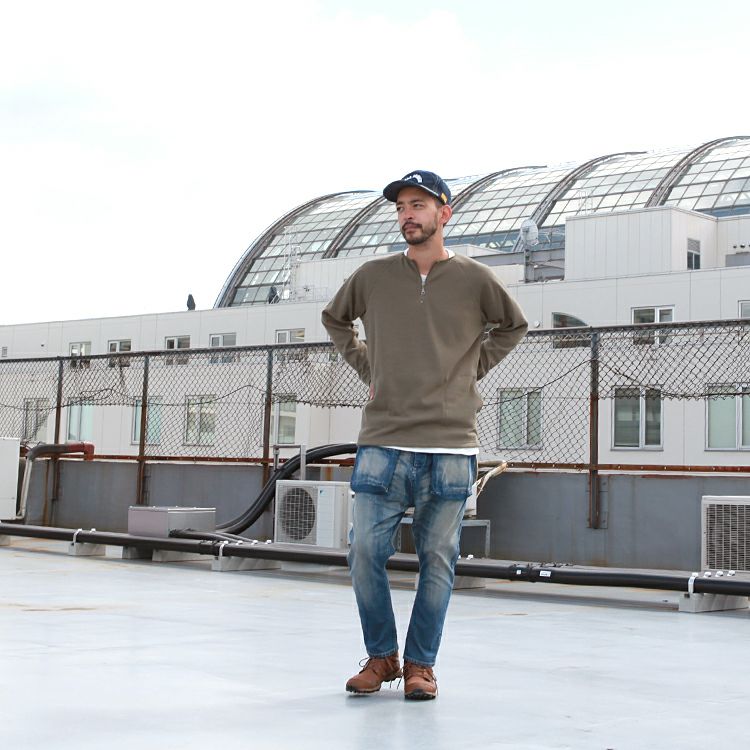 Spinner Bait ハーフジップクルー ラグランL/SL TEE ミリタリーキルト Brownfloor別注