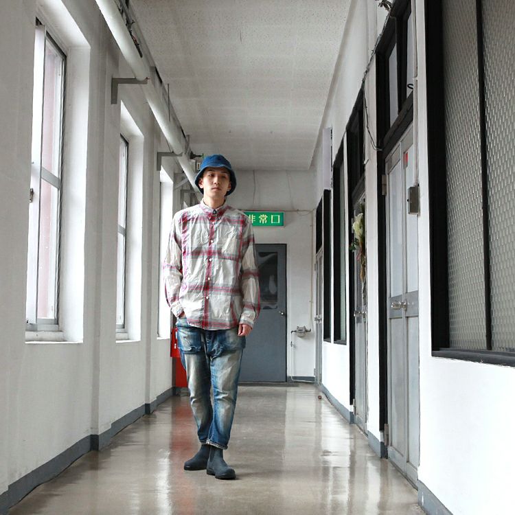 Spinner Bait タブカラーシャツ / タイプライタービッグチェック Brownfloor別注
