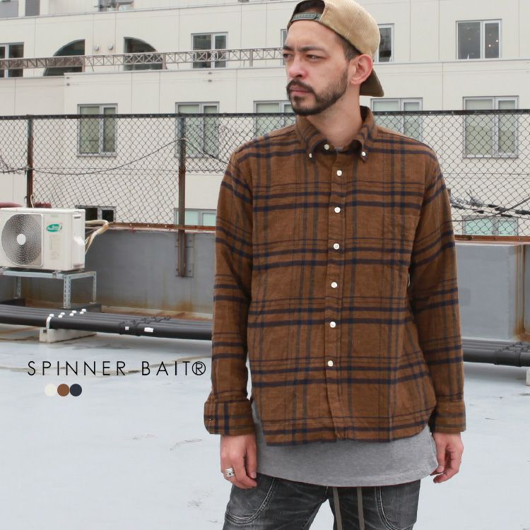 Spinner Bait ラモスシャツビッグ 先染めチェック Brownfloor別注