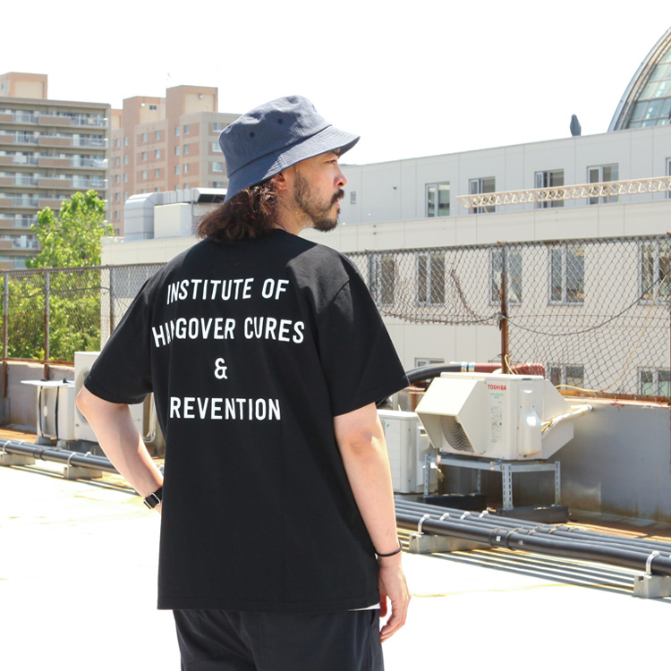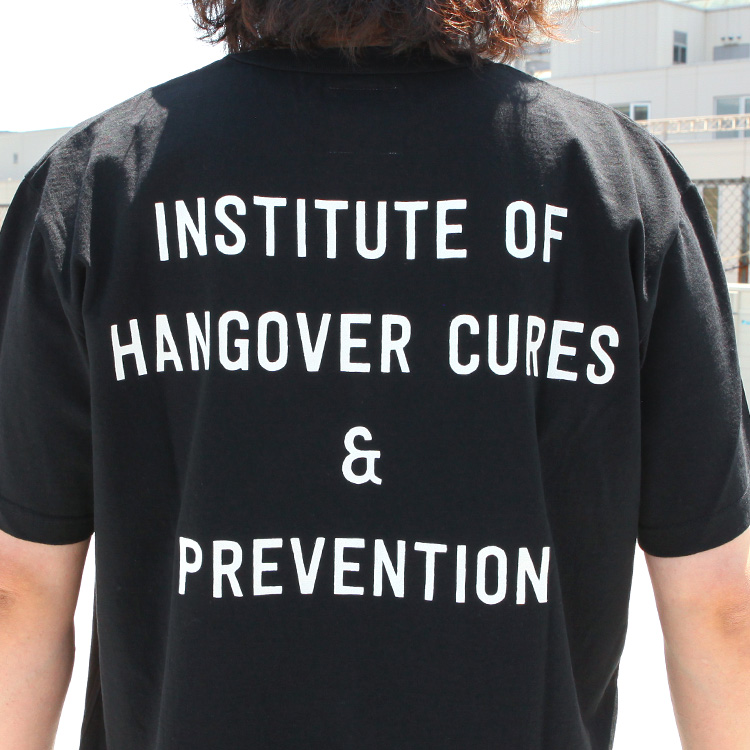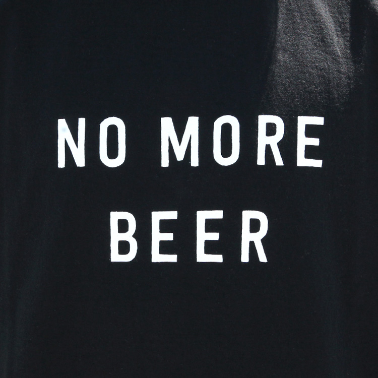 大学生のアルコール依存症が深刻な問題となっているフロリダ州では重犯罪刑務所と隣接して若年層向けの更生施設が散見される。そこでは刑務所から囚人をゲストに迎え、大音量のダンスミュージックをバックにビクビクしつつも和気藹々飲み続けるというショック療法が施行され、飲酒癖更生や二日酔い予防、その治療として効果が注目されている。このTシャツは更生施設「INSTITUTE OF HANGOVER CURES & PREVENTION 」公式ユニフォーム。フロントには収容されている学生が毎朝5万回絶叫しながら復唱することでお馴染みのキャッチコピー「NO MORE BEER」をプリント。黒ボディは収容者用ユニフォームのレプリカ、ホワイトはスーベニアショップで販売されているもの。が、結果としてこのTシャツをドレスコードにするパーティが開催されるなど、飲酒愛好家達が好んで着用する皮肉な結果となっている。