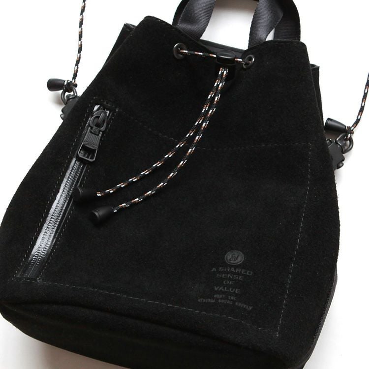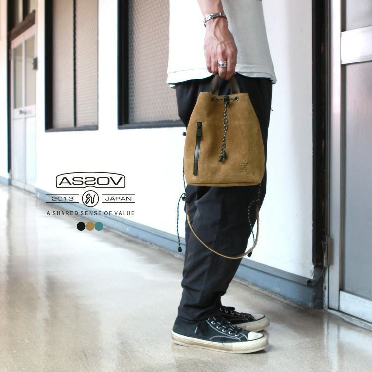 【AS2OV】独自のオリジナル素材”ウォータープルーフスウェードレザー”を採用した巾着ショルダー。