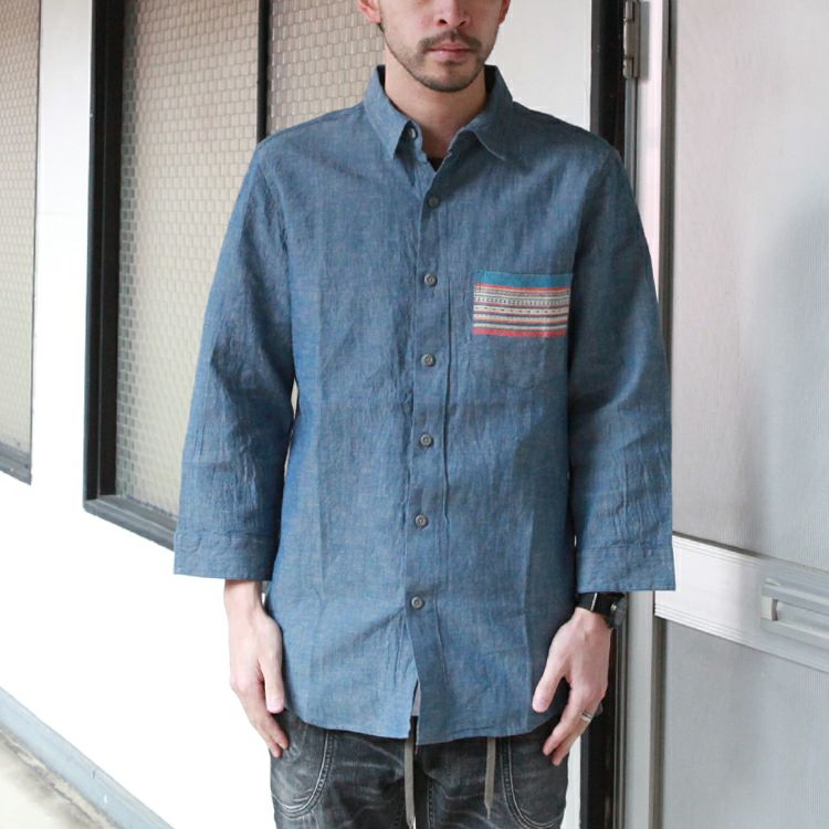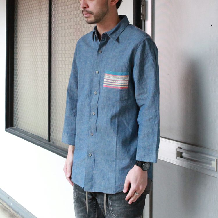 GOHEMP 3/4 SLEEVE BASIC SHIRTS / H/C CHAMBRAY JACQUARD